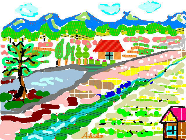 小学校の時、自分の屋根の色と同じ、赤い屋根の家の絵を何時も描いていました。今考えると私が色彩を意識するようになったのは、その時からかも知れません。田園風景の広がる40数年まえの田舎で、赤い屋根の家は珍しく、鮮やかな色彩を放っていたように、思います。